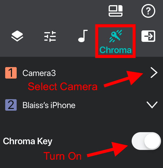 | Select Chroma Key Option: Select your Camera and turn Chroma Key on for that camera. ![]() |
